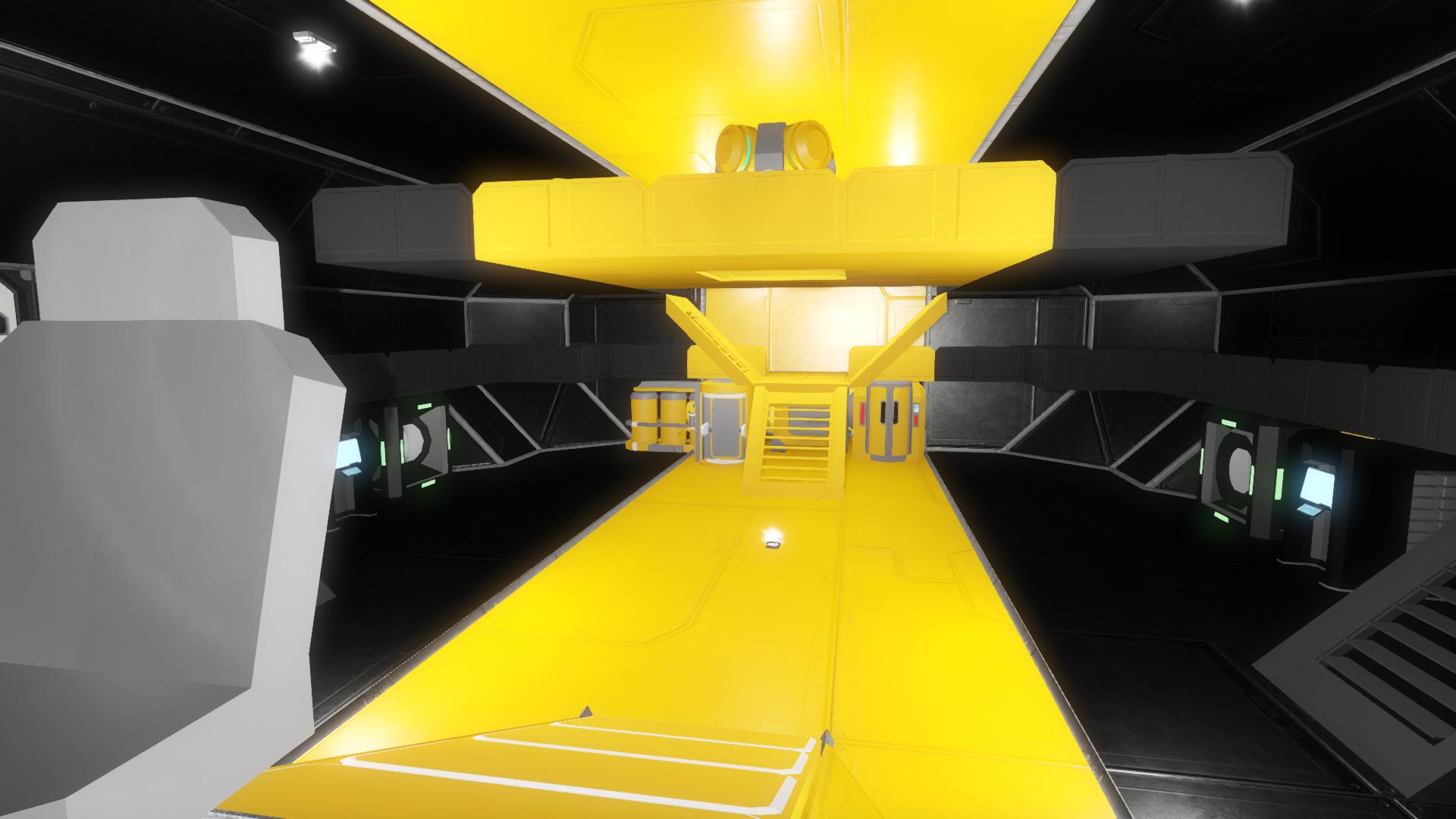Der Innenraum. Der Gravitationsgenerator hängt kopfüber an der Decke, er ist auf 0.5g eingestellt. Krankenstation, Kryokammer und Luftschacht sind vorhanden.
