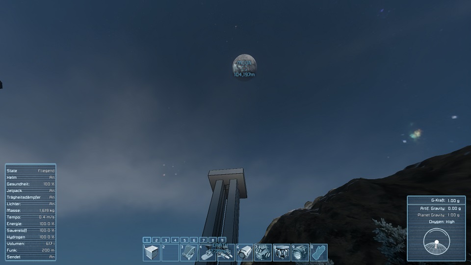 Als erstes hatte Ich versucht von der Erde aus bis auf den Mond zubauen.