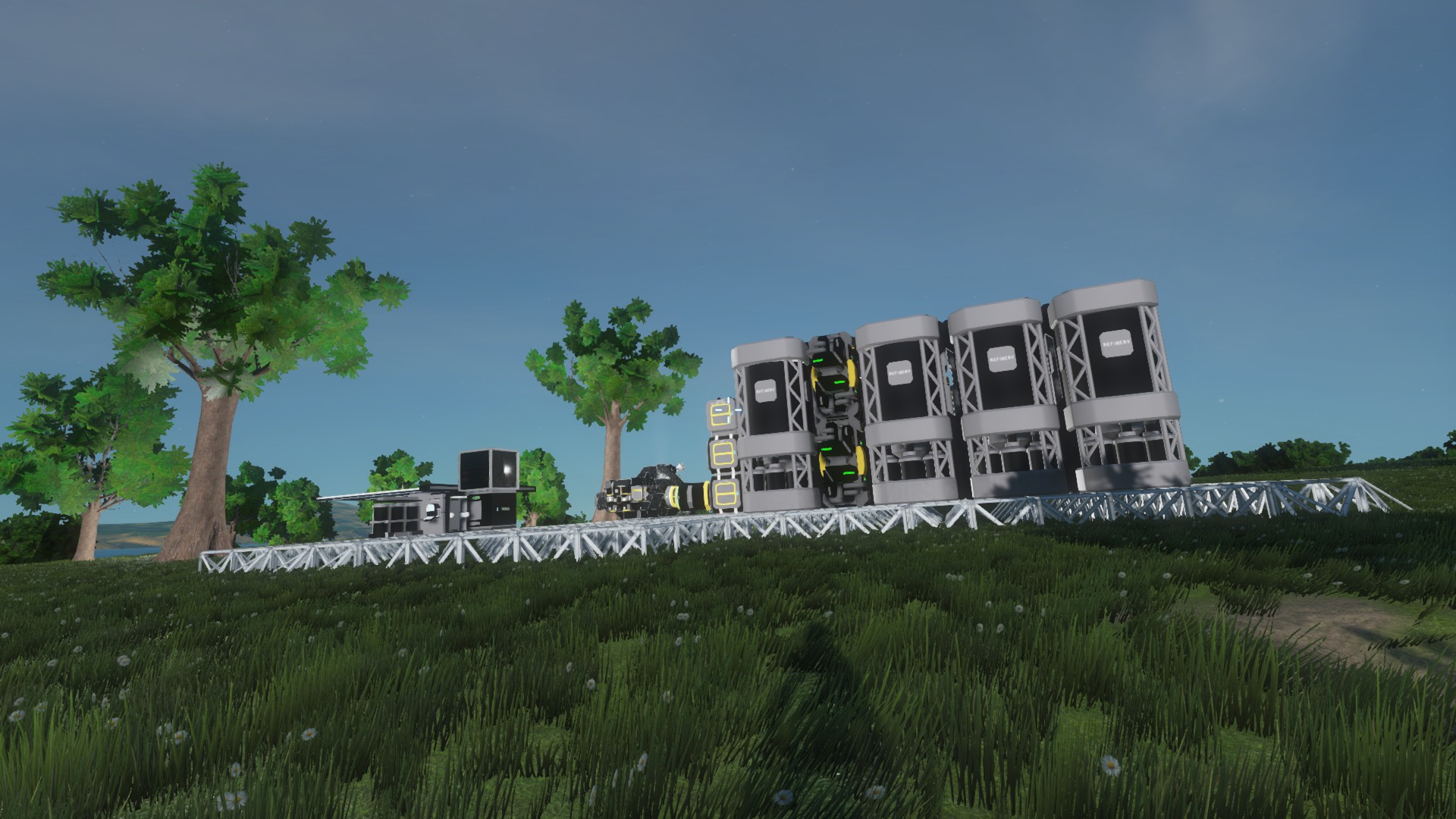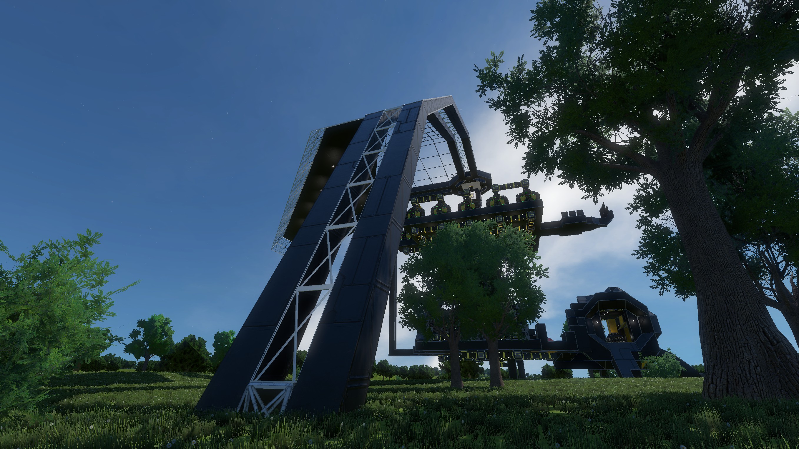 Wie man sieht, ist die Station noch im Aufbau. Ich weiss auch noch nicht so recht, was am Ende rauskommt. Damit das ganze etwas vorran kommt, hab ich ne Nanite Factory mit dabei, ansonten ist der Rest Vanilla.
