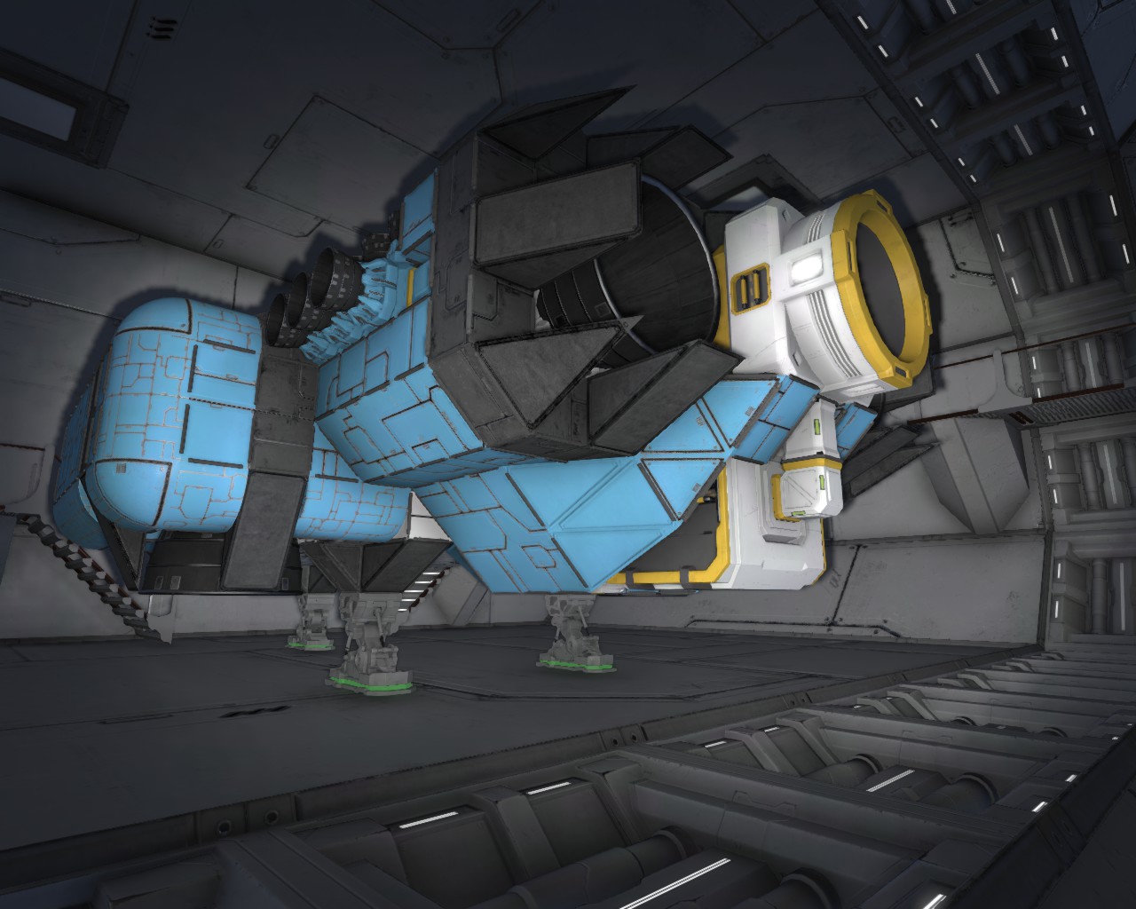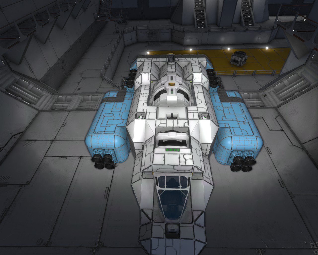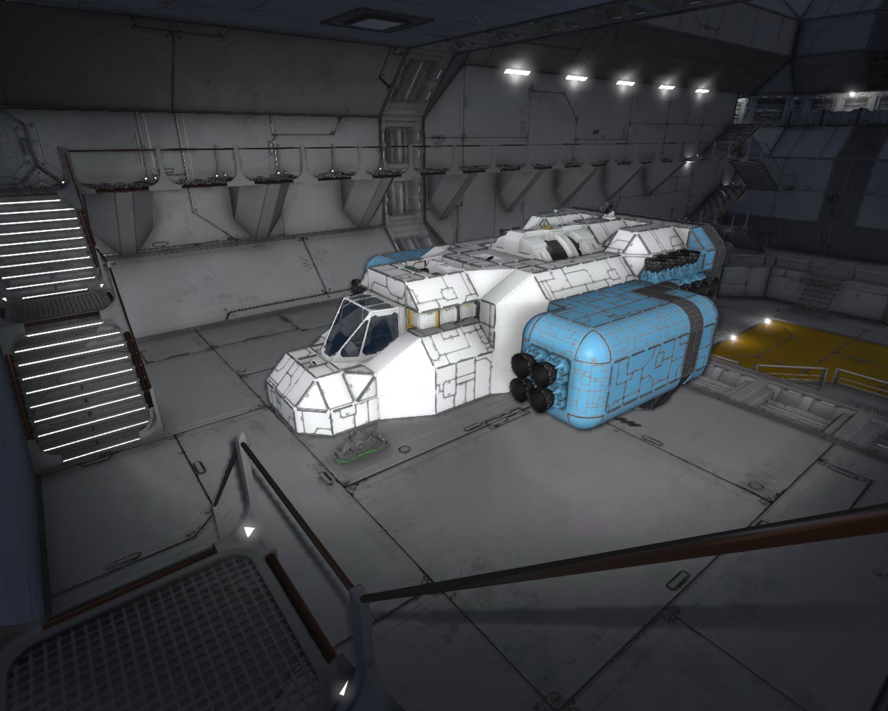 Bau dir einen mittleren Container mit Gyroskop, Cockpit, paar kl. Reaktoren und was halt dringend benötigt wird (Optik ist da erstmal unwichtig. Damit kann man später rumprobieren).