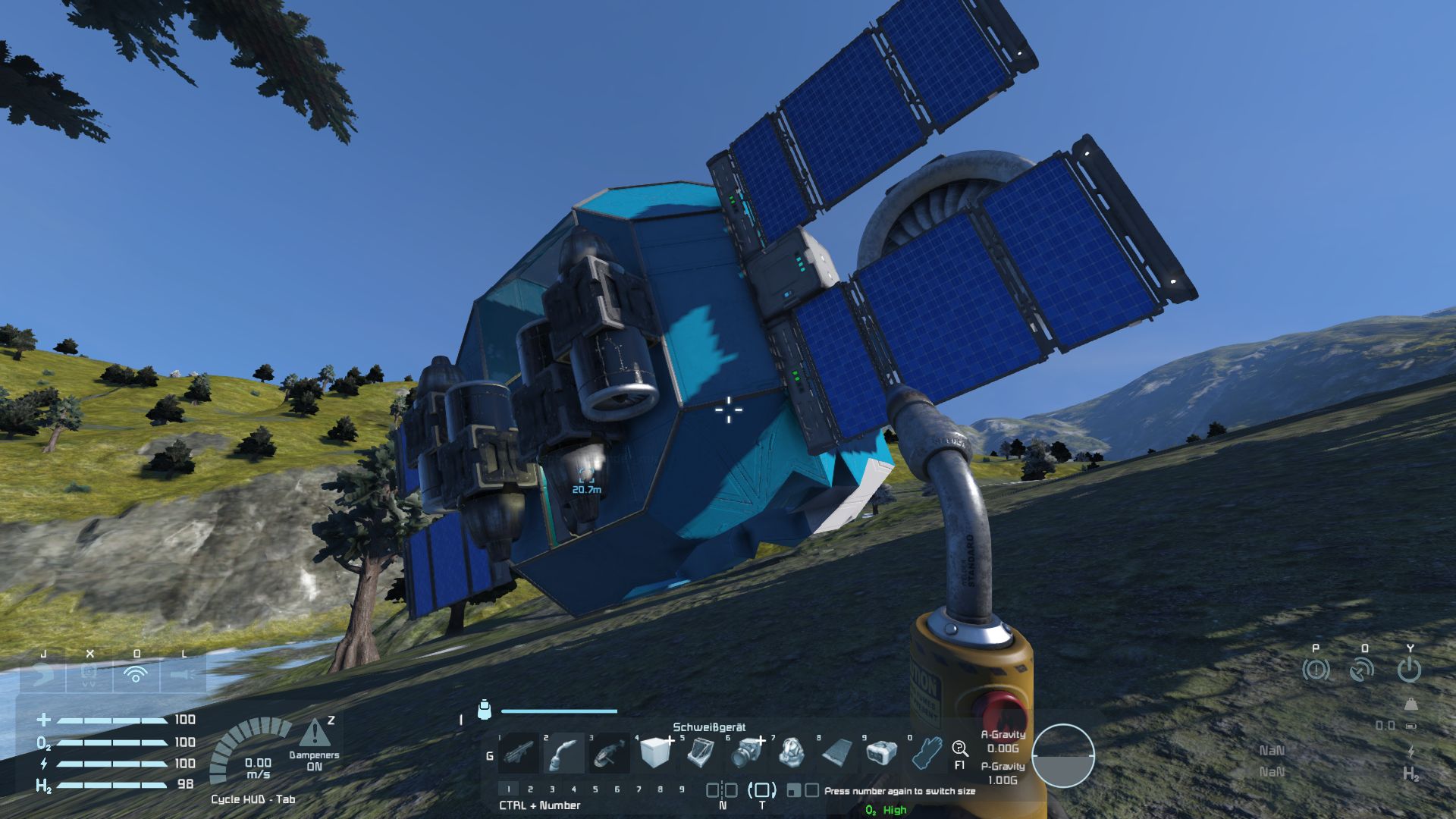 ich habe gestern mal einen weiteren Anlauf auf einem Planeten gestartet. Das Raumschiff stand sicher, Solarzellen und Batterien hatte ich angebaut (Musste erst mal wieder in das Spiel reinkommen).