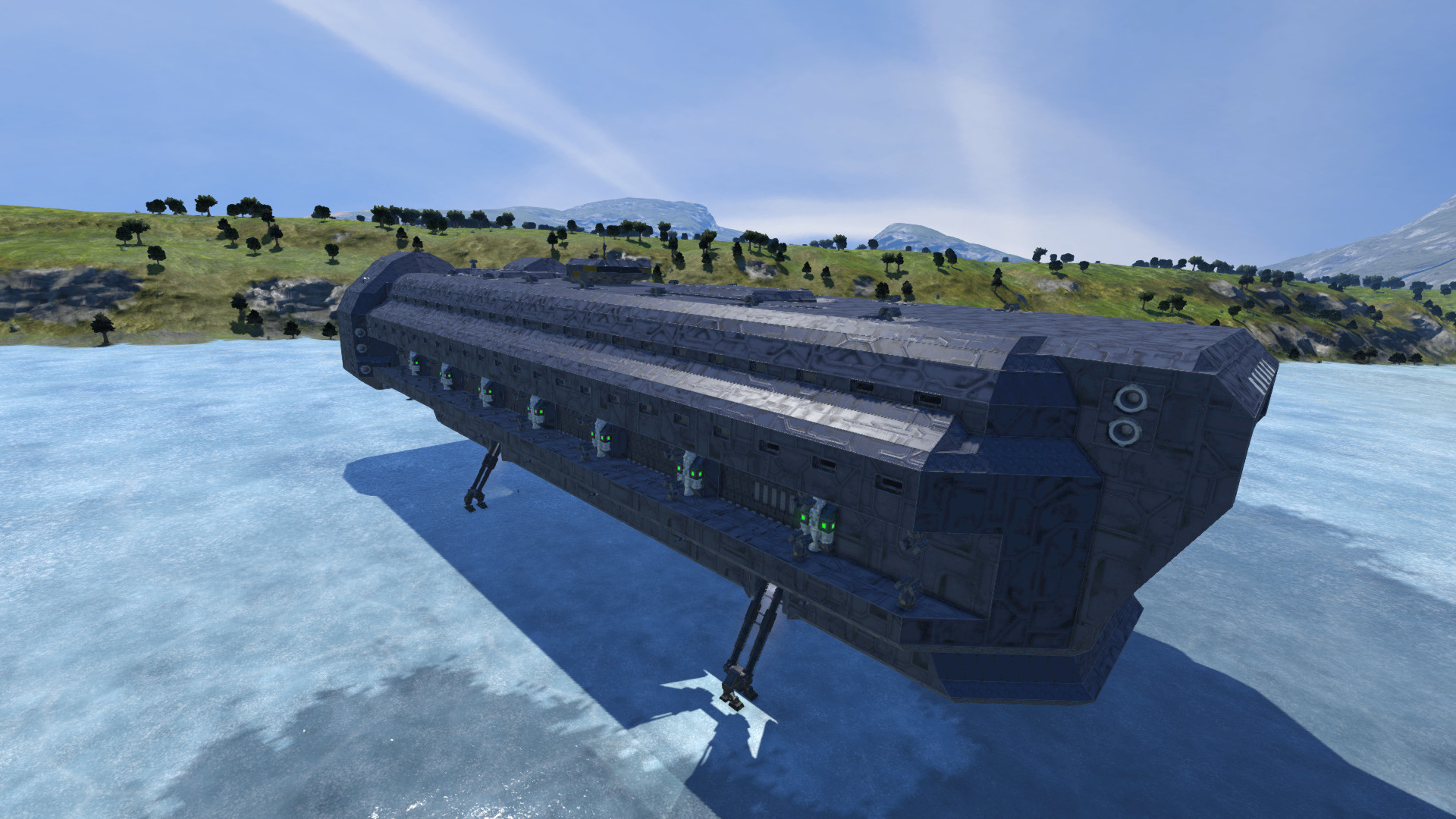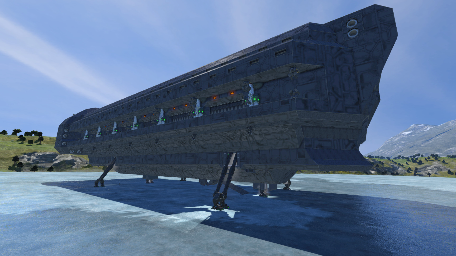 1. + 2. Tag: Segment des unteren Rumpfes mit automatischem Landefuss. Nur noch per Blueprint aneinander klatschen und das halbe Schiff ist schon fast fertig.
