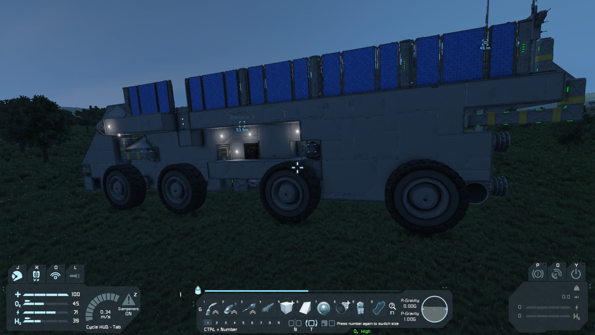 Hi, hab mir jetzt ein riesiges Fahrzeug auf der Erde gebaut, mit allem drum und dran!