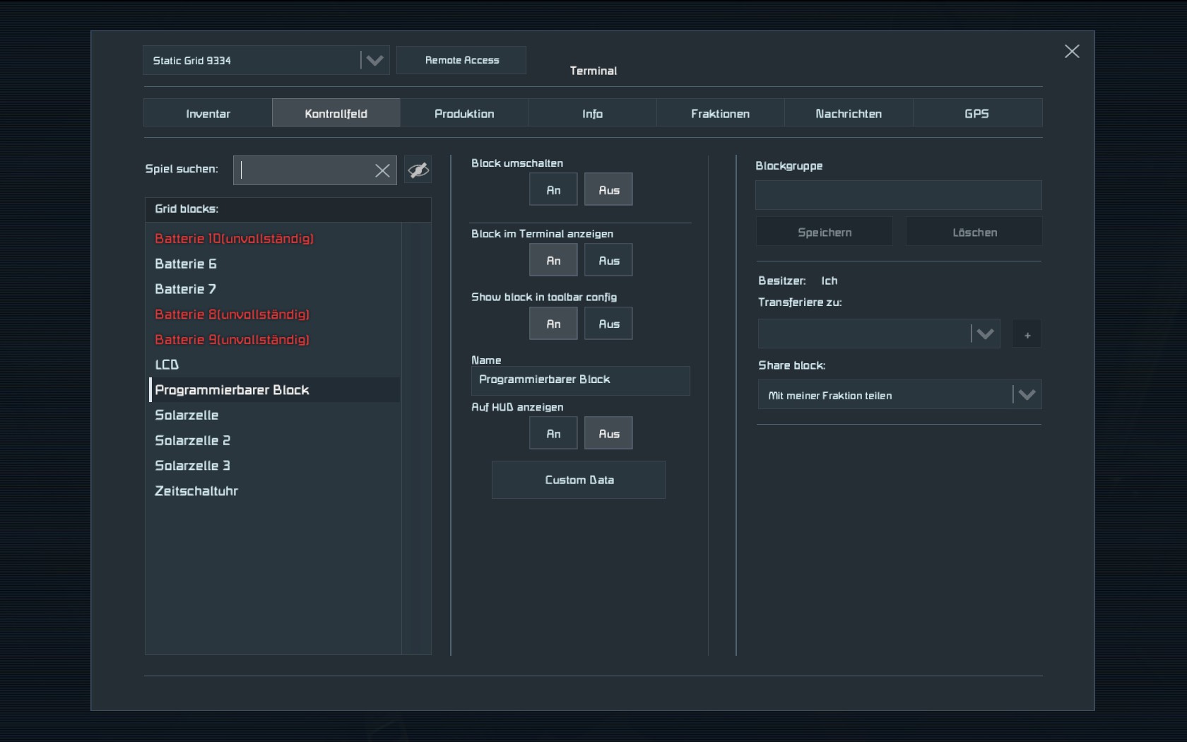 Spiele eine Weile und wollte jetzt ein bisschen programmieren - und siehe da, im programmiererbaren Block gibt es die Bearbeiten Funktion nicht.
