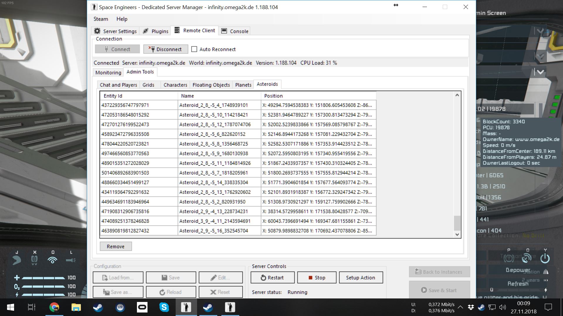• Scripte sind (für Spieler) deaktiviert. Auf der ganzen Karte sind 2 Scripte auf 4 Grids in 7 Programmblöcken aktiv (3x ATM-Script , 4x MMaster's LCD). Auswirkung auf den Server: Nicht messbar. Zugegeben, Scripte sind deaktiviert, wenn kein Spieler anwesen ist.