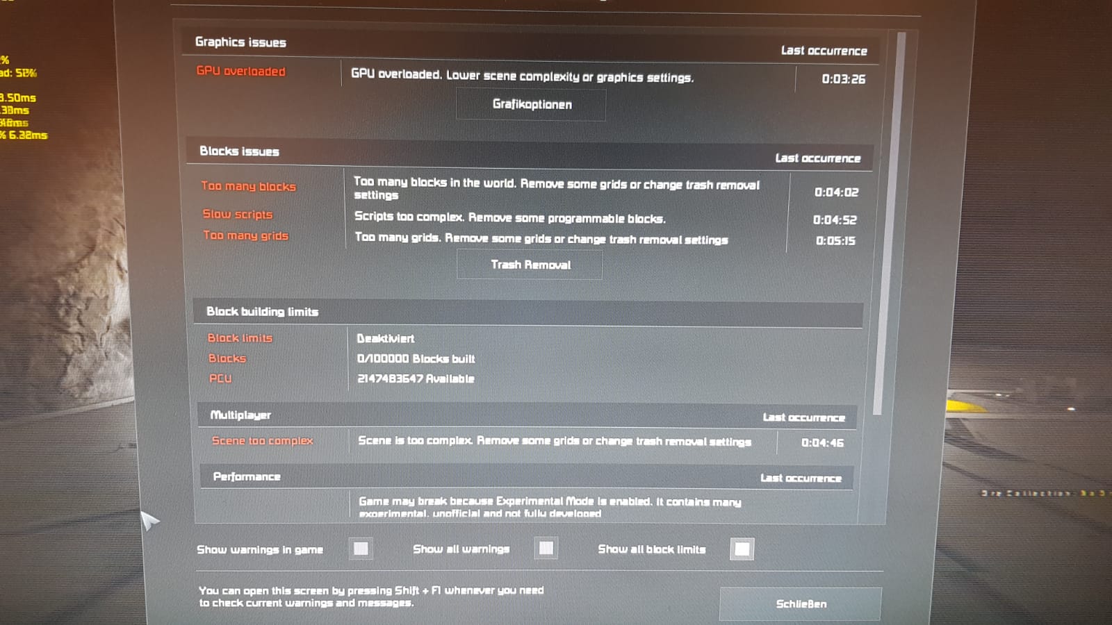 Es werden die Warnungen oben rechts angezeigt: