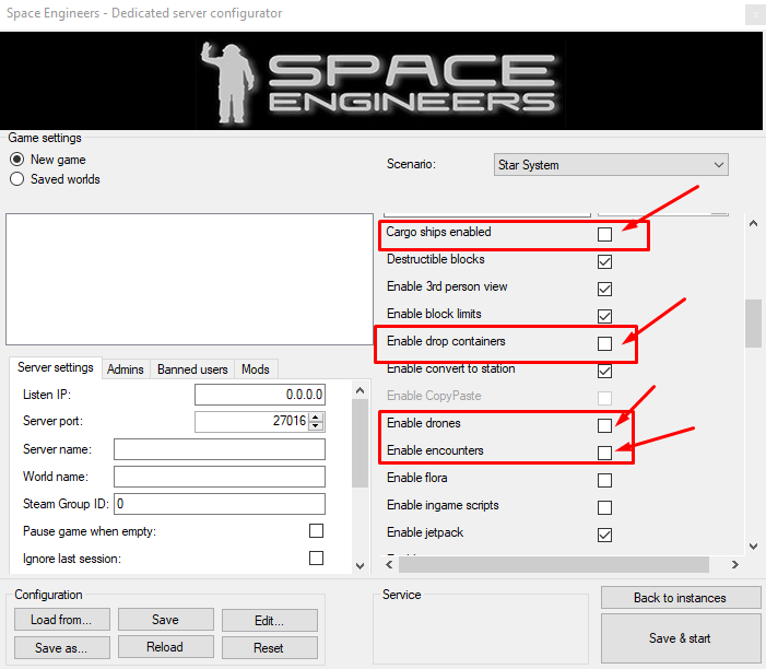 Wie schon erwähnt- der Server ist Frisch aufgesetzt, habe auf dem Root auch zum Testen mal alle meine Anderen Server Instanzen geschlossen und nur SE laufen lassen, keine Mods etc.