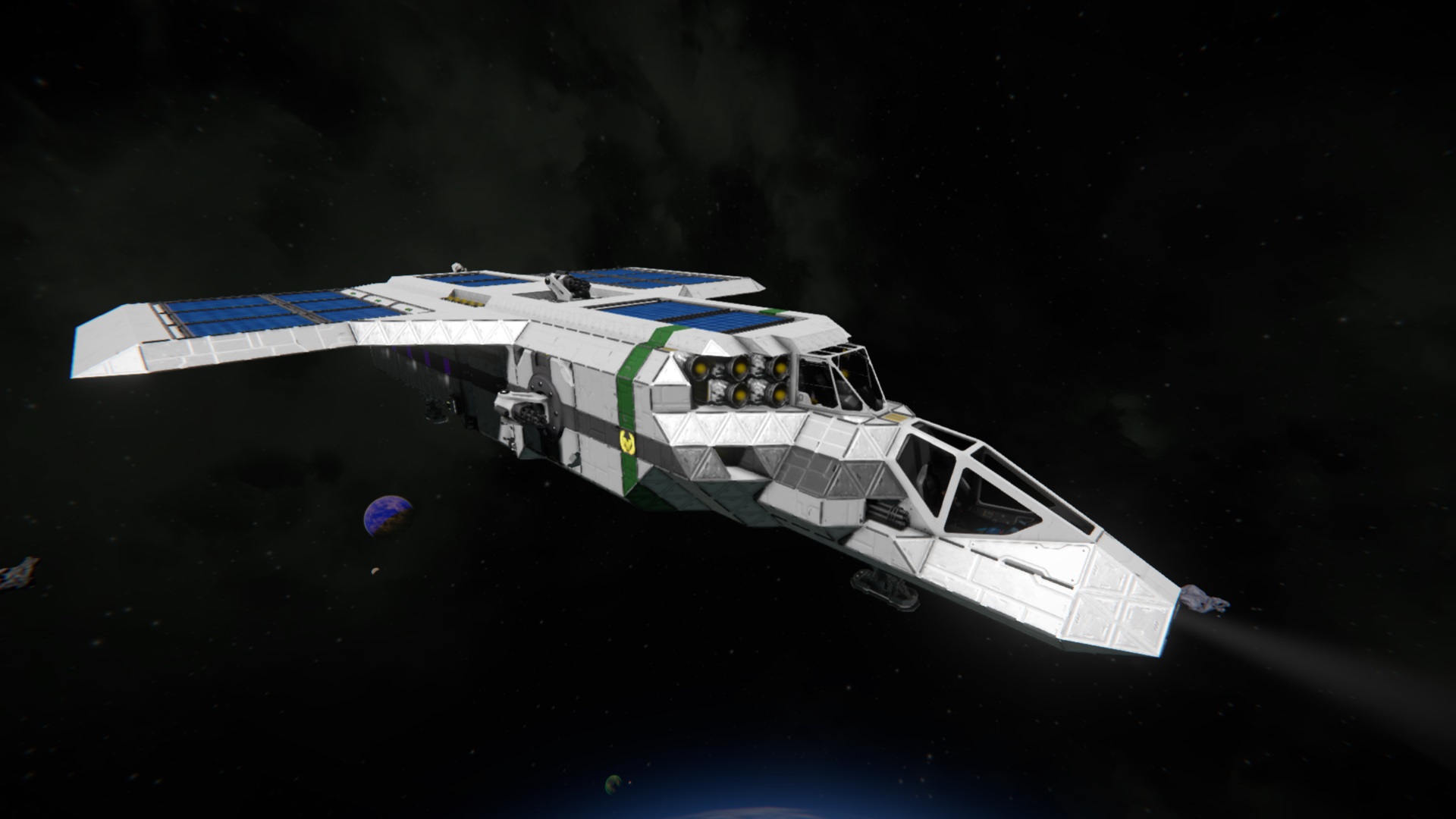 Truppen-Transpporter mit Hydrogen-Triebwerken und Platz für 10 Passagiere.