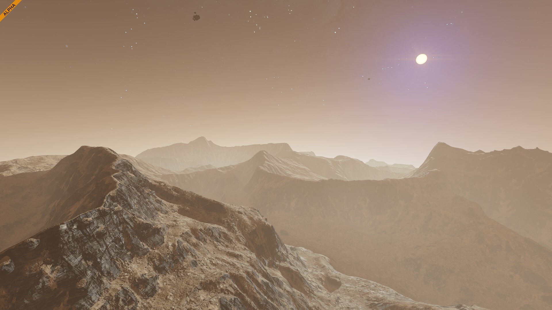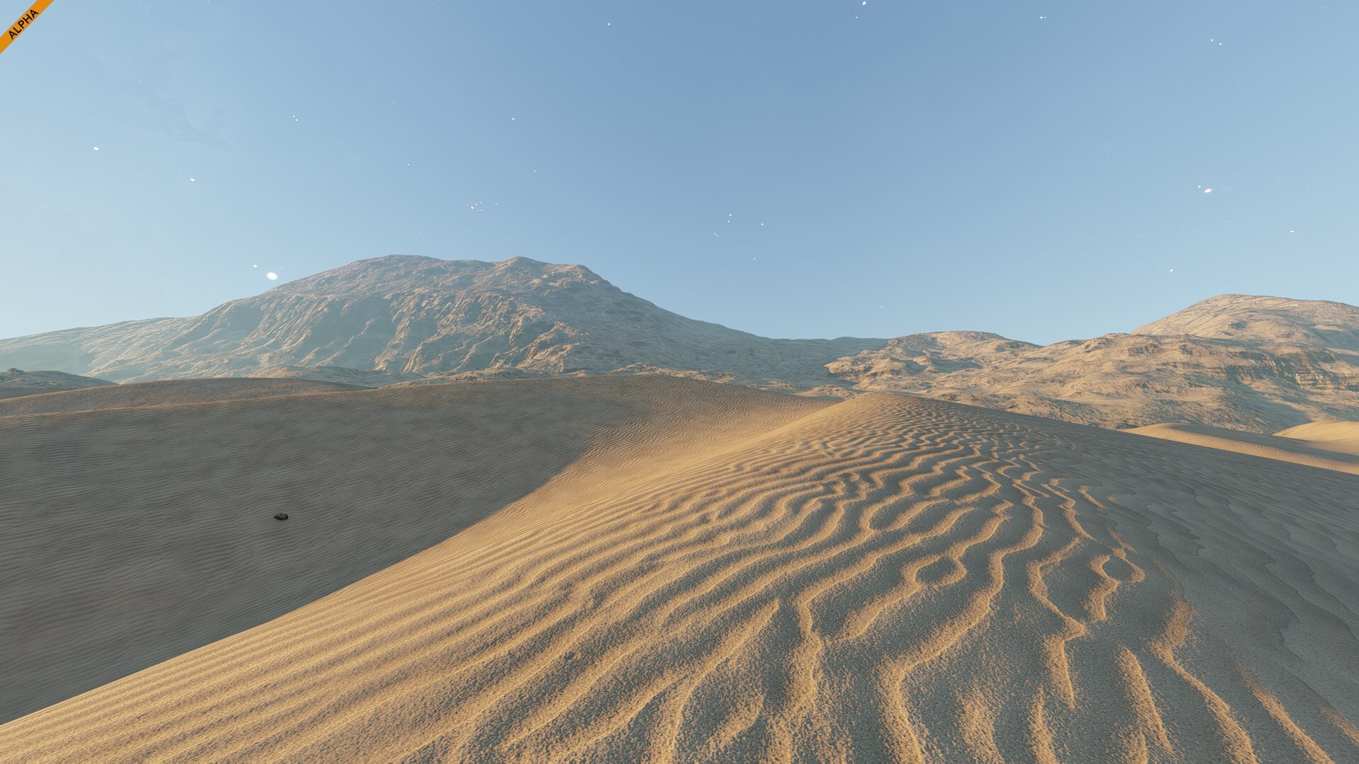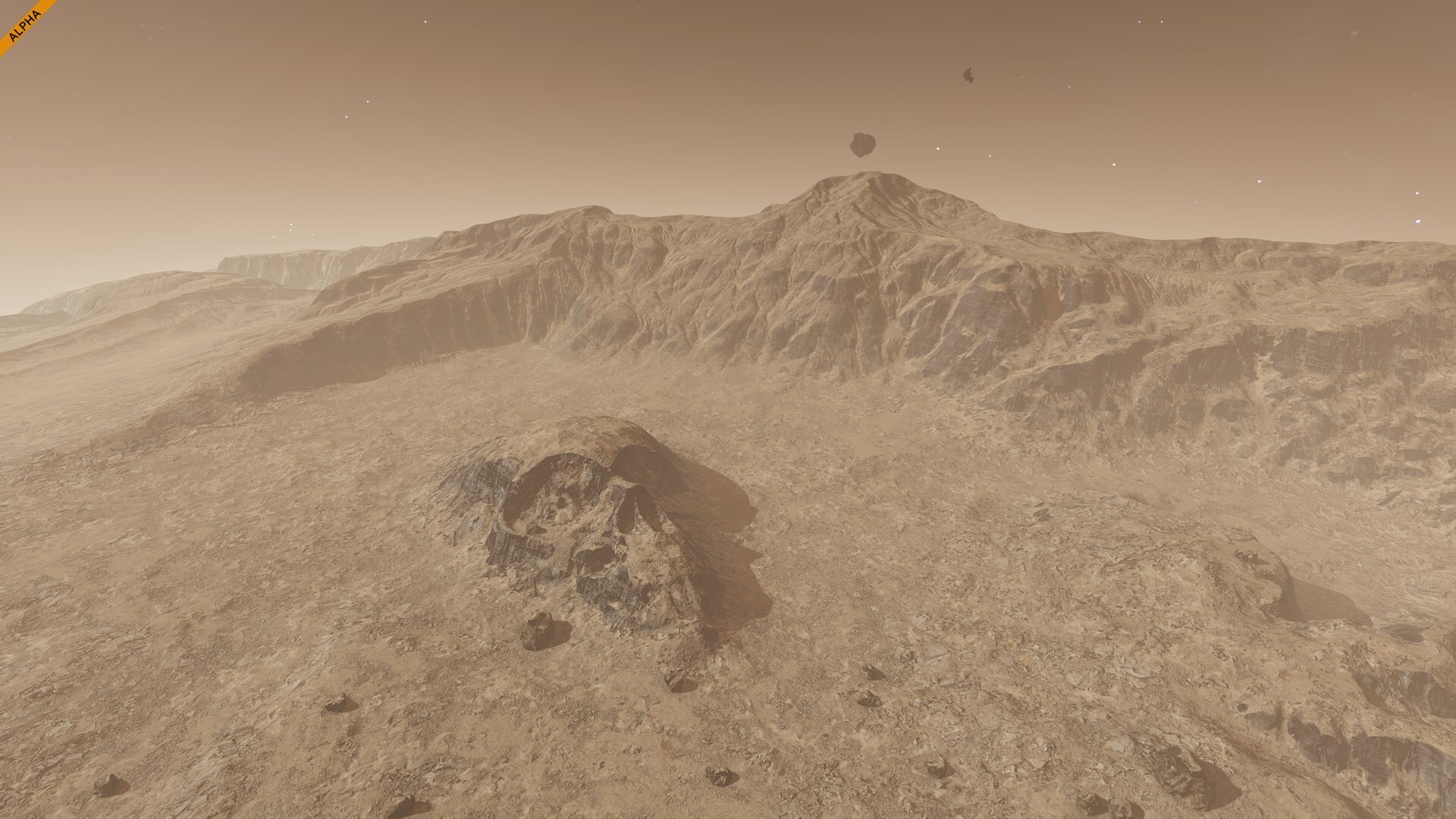 Cracked ground stretches to the horizon, broken only by jagged ridges and scattered boulders. The terrain is dry, brittle, and scorched by sun - a place where only the toughest machines and most stubborn engineers will survive. With no vegetation, thin atmosphere, and no obvious shelter, it’s a place that dares you to build, adapt, and endure.