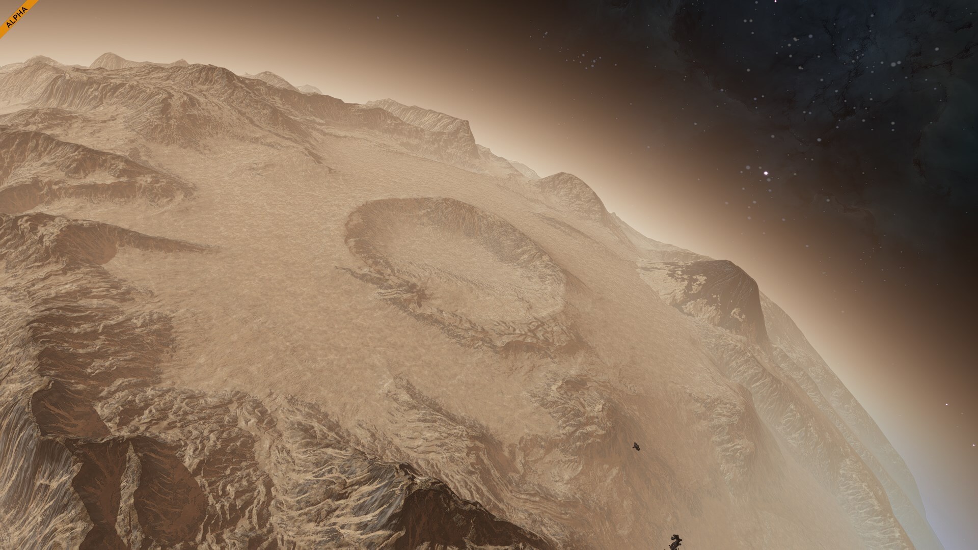 Towering over Kemik’s horizon, its largest shield volcano dominates the landscape with a sprawling rise that stretches for kilometers. From orbit, it looks like a wound in the planet’s crust - massive, ancient, and utterly unmissable.