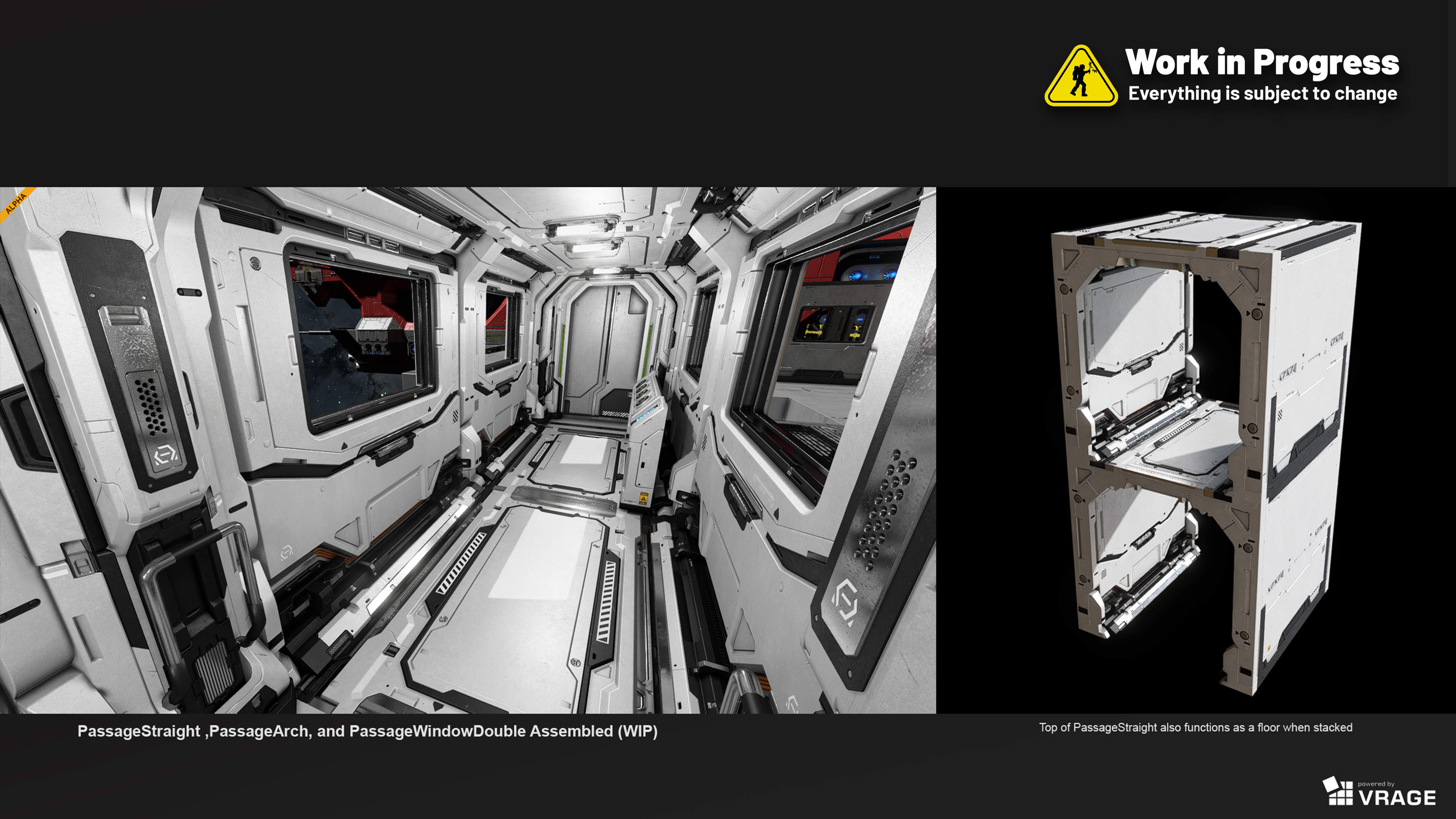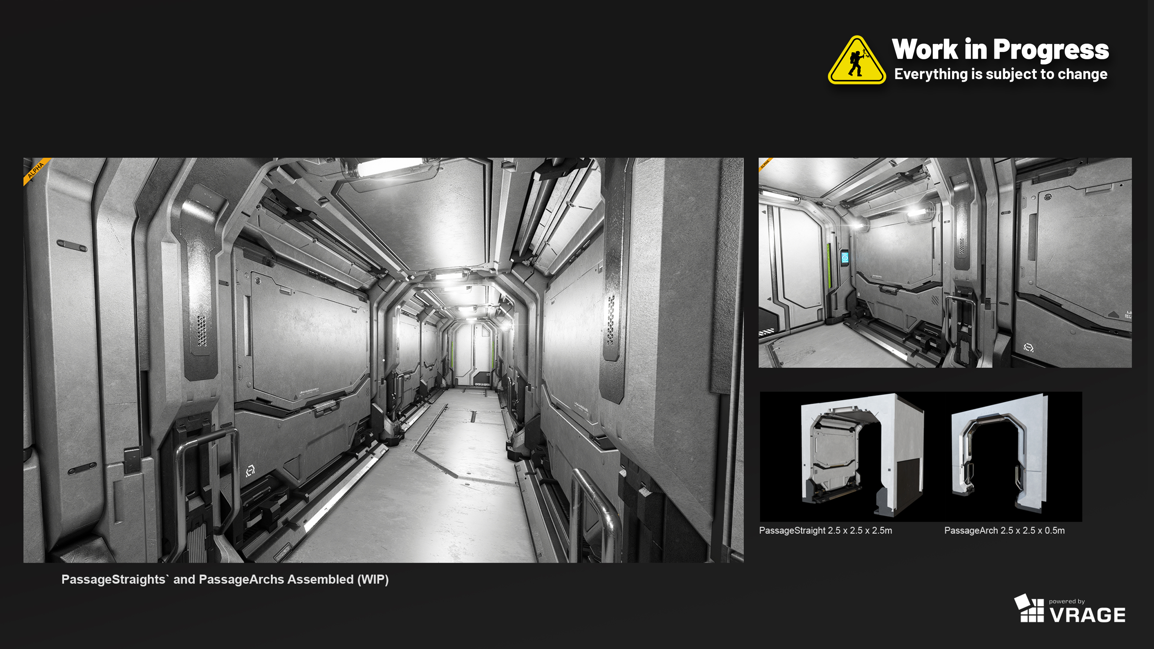 The Passage set of blocks is getting its turn as well. These blocks may look simple at first glance, but they are an important part of how players shape the interiors of their ships and stations. Passages define the flow of movement, the rhythm of corridors, and the way spaces feel when you walk through them. Our goal is to make them clean, practical, and modular, so you can build interior layouts that feel functional and believable.