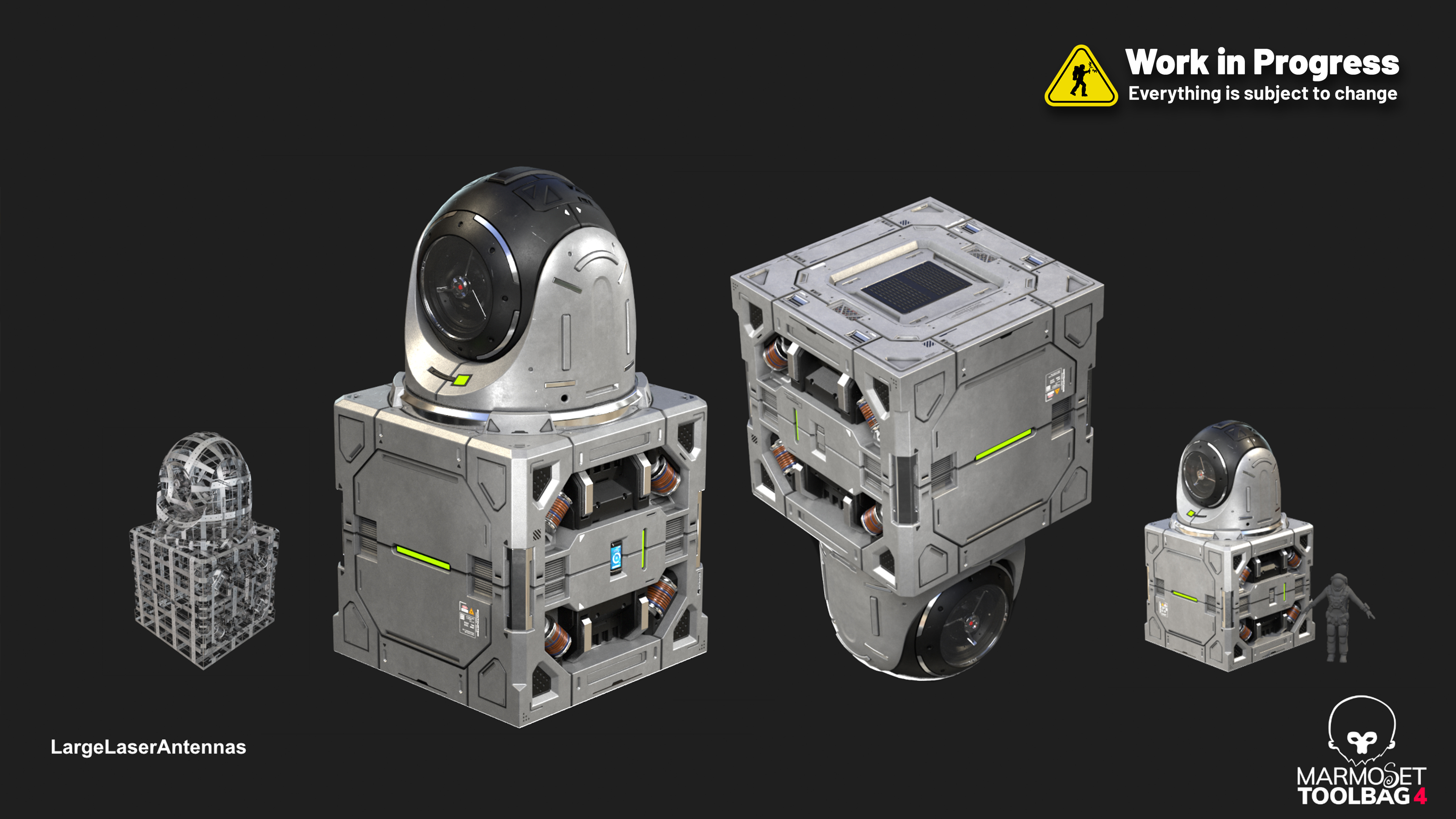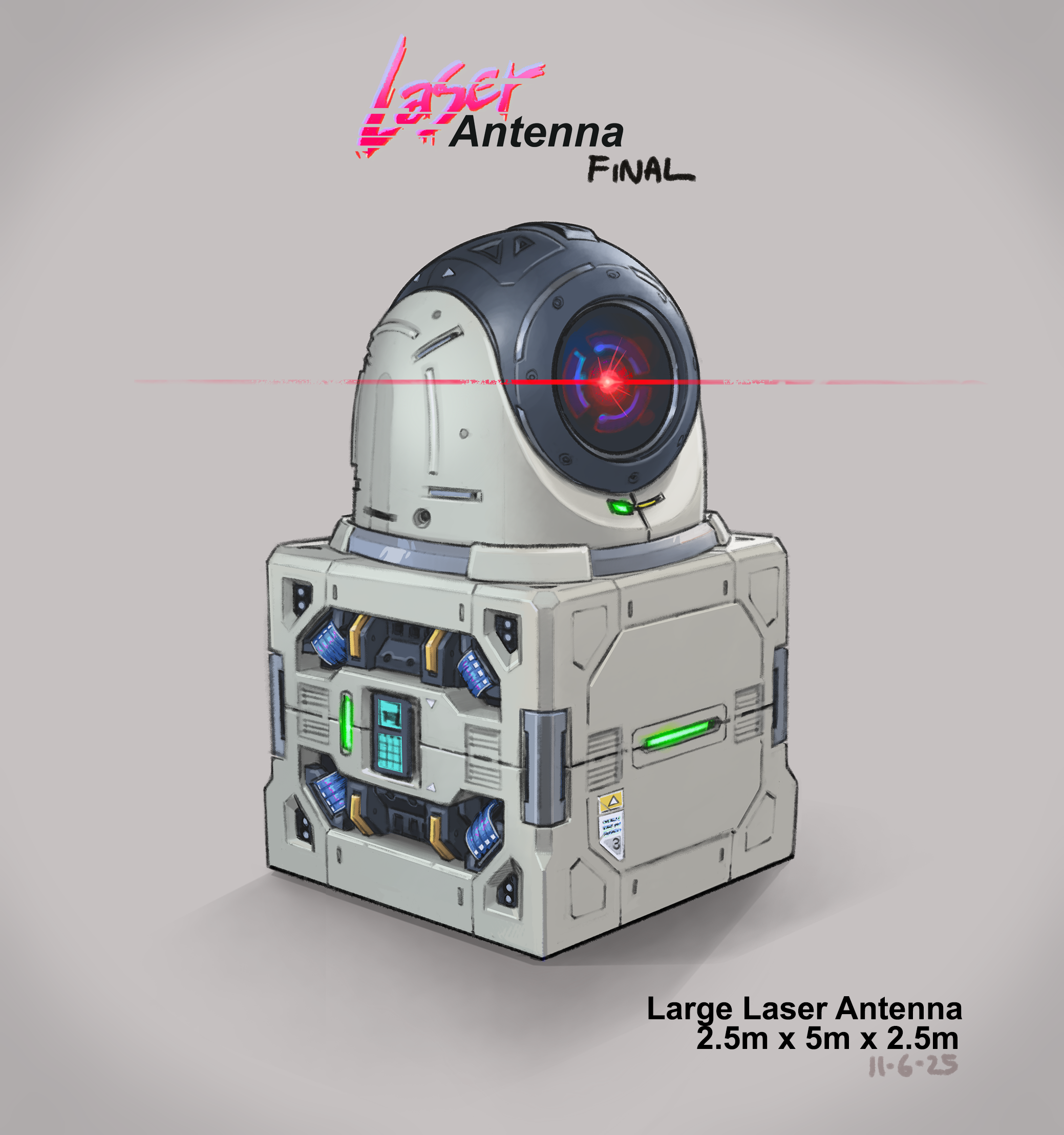 Flying through them or watching them roll across the horizon completely transforms how the planets feel. What you see here is just us playing with the system, pushing it, breaking it, and experimenting to understand how far we can take this new layer of atmosphere.Laser antenna – from concept art to finished block.Let me take you on a quick journey through SE2 block creation.