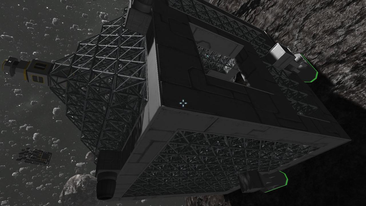 So nun zu meiner Station: Es ist eine mobile Station, mit der ich an Asteroiden andocken kann. Da die Station überwiegend geschlossen ist, gehen mir auch keine kostbaren Erze verloren!
